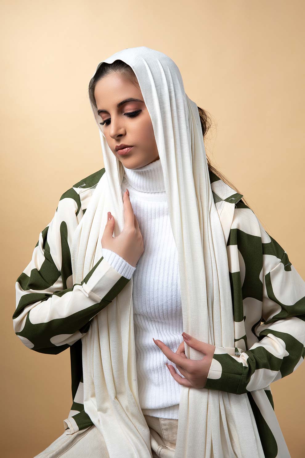 This jersey hijab features a stylish all-over motif, blending comfort with subtle elegance. The soft, stretchy fabric ensures a perfect fit, while the intricate design adds a touch of uniqueness, making it ideal for both casual and chic looks.